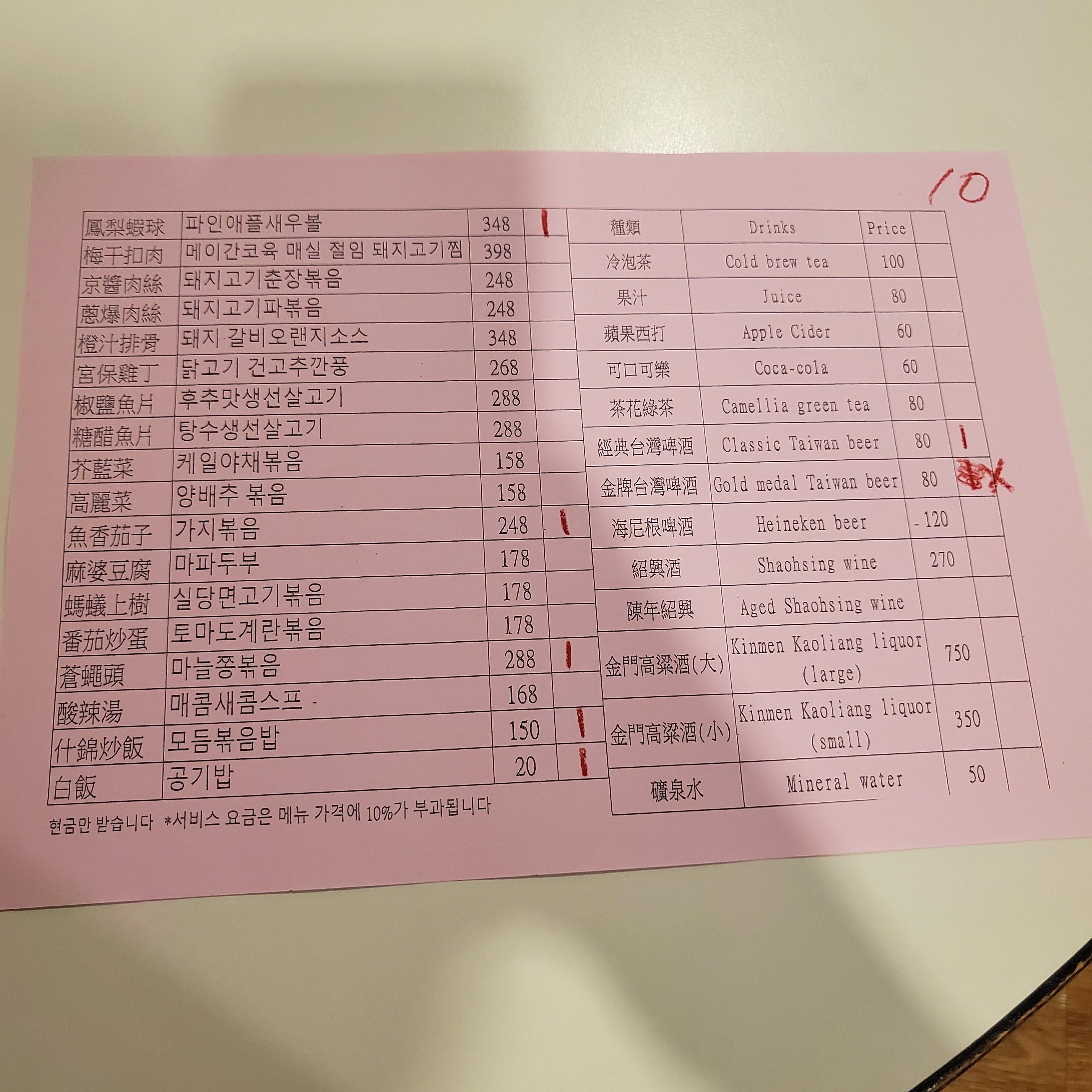 들어가면 자리 안내해주고, 빨간색 한글이 적힌 메뉴판을 가져다 주신다.
