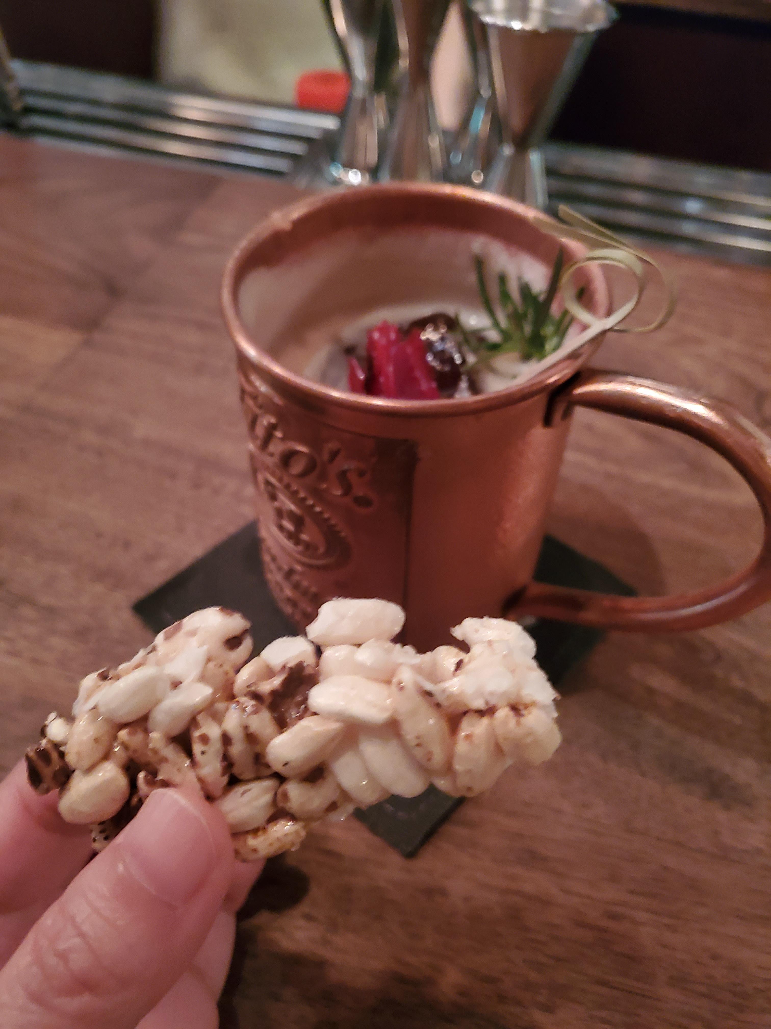 특정 칵테일에 나가는 강정인데, 맛보라고 주시기도 하고, 재밌었다